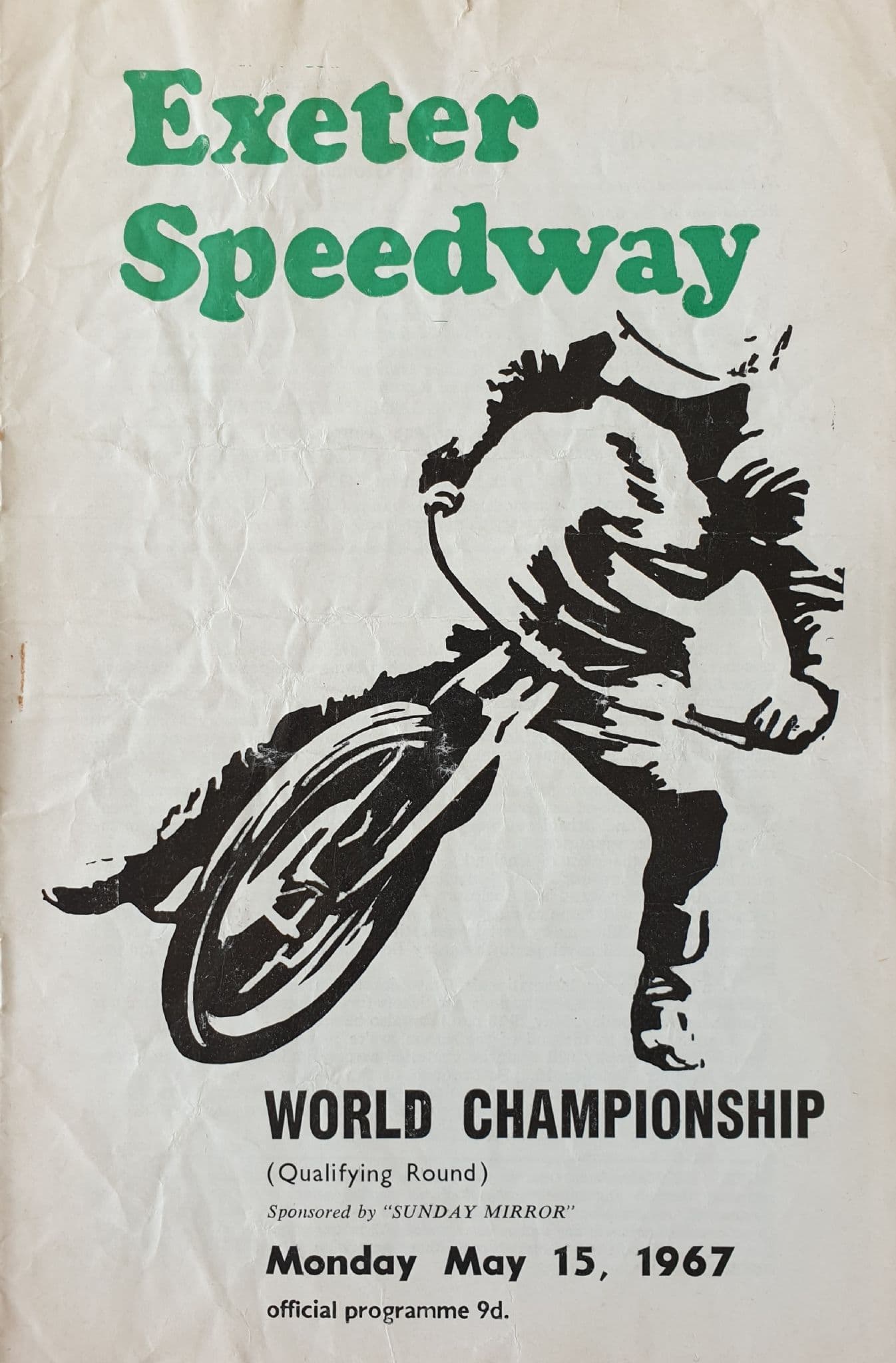 Programme from the World Championship Qualifier, held at Exeter Speedway Track, on Monday May 15th, 1966; 8 pages; in fair condition, with no results added - but some signs of pocket wear / folding